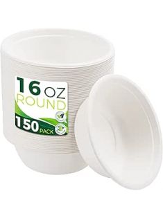 Paper Bowls 16 oz [150-Pack], Heavy Duty Disposable Bowls Perfect for Hot Soup and Milk Cereals, 100% Compostable and Eco-Friendly Made from Bagasse