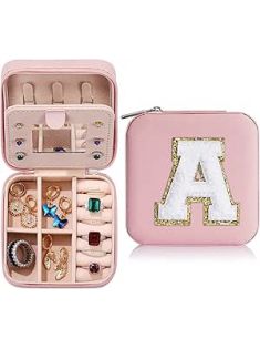 Parima Gifts for Teen Girls Kids - Gifts for Teen Girl Trendy Stuff, Birthday Gifts for 5 6 7 8 9 10 11 12 13 14 15 Year Old Girls,Cute Travel Jewelry Case Small Jewelry Box | Letter A, Pink