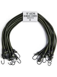 Pluvios - 18" (45CM) Bungee Cords with Hooks Heavy Duty Outdoor - 10 Pack – Choice of Sizes - Multi-Purpose Elastic Bungee Straps for Luggage, Camping - Weatherproof & UV