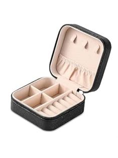 Portable Travel Mini Jewelry Box Leather Jewellery Ring Organizer Case Storage Gift Box Girls Women (black).