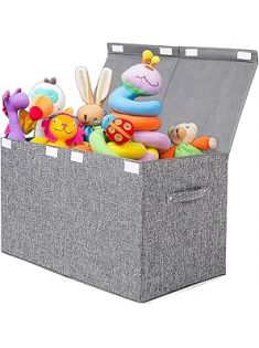 popoly Large Toy Box Chest with Lid, Collapsible Sturdy Toy Storage Organizer Boxes Bins Baskets for Kids, Boys, Girls, Nursery, Playroom, 25"x13" x16" (Linen Gray)