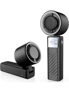 Portable Handheld Turbo Fan - Foldable Mini Fan with Air Turbo Tech, 1-199 Speed Adjustment, 20H Runtime, LED Display, Battery-Powered for Indoor/Outdoor Use, Dark Black