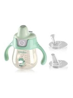 POTATO Sippy Cups For Toddlers with Straw Spill Proof, PPSU Learner Cup with Handle for Babies, Water Bottle for Baby 6 Months with 2 Type of Spout, 6 Ounce Green