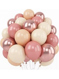 Retro Blush Pink Balloons, 60 Packs 12 Inch Dusty Pink Metallic Chrome Rose Gold White Sand Nude Balloons for Bridal Baby Shower Girls Boho Birthday Wedding Decorations Supplies
