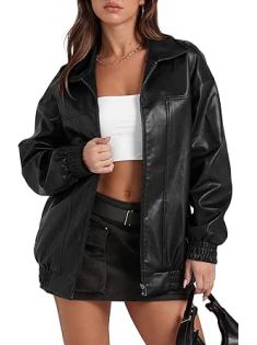SAMPEEL Leather Jacket Women Faux Oversized Motorcycle Bomber Coats 2024 Fall Fashion Outfits Winter Clothes