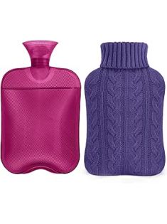 samply Hot Water Bottle with Knitted Cover, 2L Hot Water Bag for Hot and Cold Compress, Hand Feet Warmer, Ideal for Menstrual Cramps, Neck and Shoulder Pain Relief, Purple