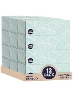 Save Trees Bamboo Facial Tissues - 12 Boxes of Eco-Friendly, 3-Ply Hypoallergenic Tissues, 90 Sheets per Box, FSC Certified, Plastic-Free Packaging, Soft & Gentle for Home Use