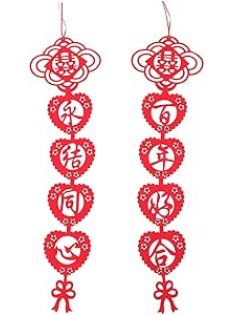 SEWACC 2 Pcs Chinese Couplets Non- Woven Fabric Wedding Decoration Porch Sign Red Chinese Character Front Door Couplet Paper- Cut Art for Wedding Party Room Wall Decoration