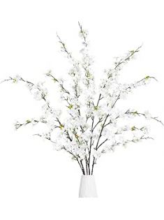 Sggvecsy Artificial Cherry Blossom Flowers 4 Pcs Faux Cherry Blossom Stems Faux Silk Cherry Blossom Branches 43’’ Fake Flowers Long Stems for Vase Arrangements Home Wedding Table Decor (White)
