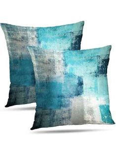 Set of 2 Turquoise and Grey Art Artwork Contemporary Decorative Gray Home Decorative Throw Pillow Covers Cushion Covers for Bedroom Sofa Living Room 18X18 Inches