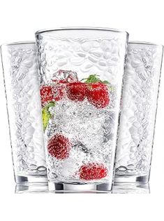 Set of 10 Hammered Glass Cups, 16oz. Dishwasher Safe Cocktail Drinking Glasses - Clear Heavy Base Stemmed Water Glasses, Tall Beer Glasses, Bar Glass, Juice, Iced Tea, Margarita, & Everyday Drinks.