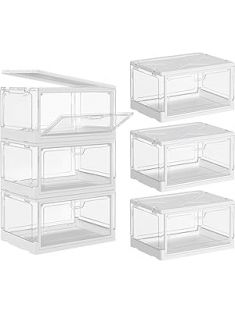 SNSLXH Clear Storage Bins with Lids, Stackable Storage Bins with Magnetic Doors Open Front, Plastic Storage Bins for Living Room, Bedroom, Study Room and Office, 3 Packs, 24QT