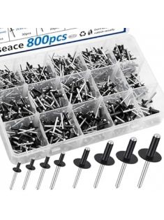 smseace 800pcs Black Pop Rivets with Large Flange Rivets Assortment Kit 7-Sizes Black Rivets with Large Head(1/8" 3/16" 1/4") 8-Sizes Small Rivets (3/32" 1/8" 5/32" 3/16") Pop Rivets Assortment kit