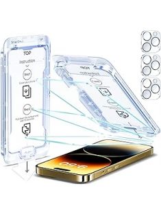SMARTDEVIL 3-Pack Screen Protector for iPhone 14 Pro with 3-Pack Camera Lens Protector, Clear 9H Tempered Glass Film, Super Fast Installation (Dust-Free & Bubble-Free), Alignment Tool