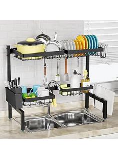 SNSLXH[2-Tier 4 Baskets]Over The Sink Dish Drying Rack, 24.8"-35.4", Large Sink Rack for Kitchen, Extensible and Adjustable, Saving Kitchen Space