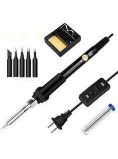Soldering Iron Kit,60W 110V Soldering Iron with 5 pcs Interchangeable Black Alloy Iron Tips,9-in-1 Adjustable Temperature 200 to 450°C Soldering Welding Kit with ON/OFF Switch,Black