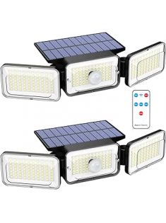 Solar Lights Outdoor Waterproof, Motion Sensor & Flood Outdoor Lights with Remote Control, 4 Adjustable Modes, 3000LM & 218 LED, High-Energy-Density Solar Panel-Monocrystalline Technology, 2 Pack