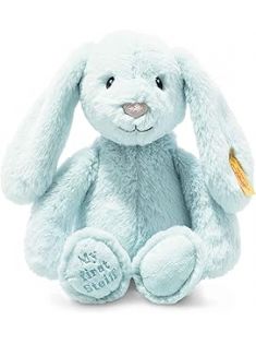 Steiff Soft Cuddly Friends My First Hoppie Rabbit 10", Premium Stuffed Animal, Light Blue
