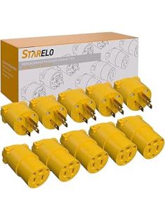 STARELO Electrical Replacement Plug & Connector Set Extension Cord Ends Yellow Shell 125V 15A 2Pole 3Wire NEMA 5-15P & 5-15R Industrial Grade 3-Prong Straight Blade Grounding Type(5),UL Listed.
