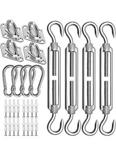 Sun Shade Sail Hardware Kit 6 Inch for Rectangle & Triangle Shade Sail Install, Stainless Steel Shade Sail Fixing Accessories for Outdoor Patio Canopy Garden, Heavy Duty Awning Attachment Set (44 Pcs)