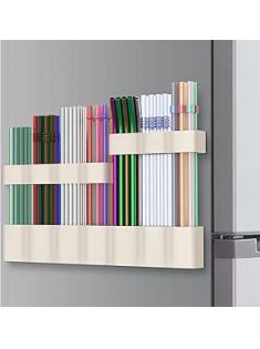 Straw Holder Large for Refrigerator 11”2025 Adjustable Two-Part Magnetic 3in1 Split Design Silicone Straw Dispenser Organizer for Compatible Oven Metal&Fridge Organizers and Storage (Gream)