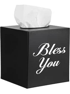 Sumnacon Tissue Box Cover Square, Bless You Tissue Holders, Decorative Tissue Box Holder Open Bottom, Cube Metal Tissue Cover for Bathroom, Bedroom, Living Room, Office, Tabletop, Gift Option, Black