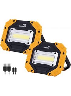 sunzone LED Work Light,Portable Flood Light with Magnetic Base,Rechargeable Waterproof Job Site Lighting for Camping,Fishing,Car Repair with Emergency Mode (2 Pack)