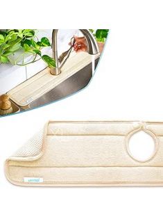 Ternal Sinkmat for Kitchen Faucet, Original Design, Absorbent Microfiber Fabric, Machine Washable Splash Guard & Drip Catcher For Around Faucet Handle [Cream, XL, 1 Pack]