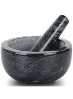 Tera Marble Mortar and Pestle Set Large Solid Stone Grinder Spice Herb Grinder Pill Crusher (Black, Diameter 5.5")