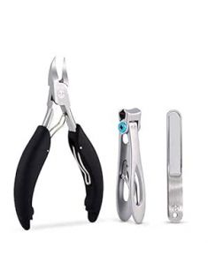 Toenail Clippers Set, Nail Clippers for Thick Hard Nails, Professional Podiatrist Heavy Duty Toe Nail Clipper and Nail File for Men and Adults, Seniors - Super Sharp Surgical Stainless Steel (Black)