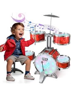 Toddlers Drum Set for Kids 1-3 3-5 with Stool Toys, Higher Bracket of Musical Drum Toys for Toddlers, Red Drumset for Girls Boys 2-4 4-6 Years