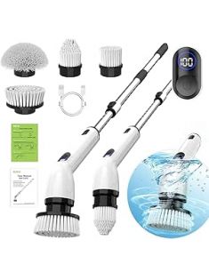 TUYU Electric Spin Scrubber, 2024 New Full-Body IPX7 Waterproof Bathroom Scrubber with Power LCD Display, Adjustable Extension Handle, Cordless Electric Cleaning Brush for Bathroom, Kitchen Cleaning