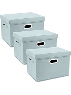 TYEERS Large Collapsible Storage Bins with Lids, Organization Bins for Closet Storage, Clothes Storage, Folding Storage Box with Lids for Home Office Storage - 3 Pack - Aqua Spring