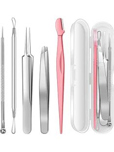 TsMADDTs Blackhead Remover Tools, Ingrown Hair Tweezers, Pimple Popper Tool Kit, Blackhead Extractor, Eyebrows Tweezers for Women Facial Hair Razors