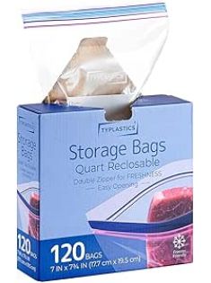 TYPLASTICS Quart Food Storage Zip Bags, 120 Count, Double Zipper, Easy Open Design, Reclosable