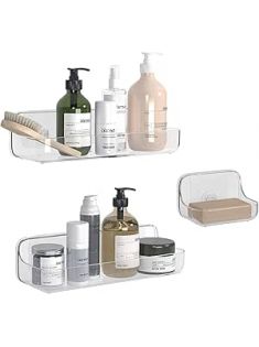 TZAMLI Shower Caddy with Soap Dish, Adhesive Shower Organizer Plastic Shower Shelf Wall Mounted Shower Shelves for Bathroom Storage (Clear, 3 Pack)