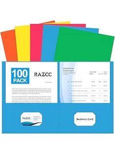 Two Pocket Folders, RAZCC 100 Pack File Folders with Pockets Fit Letter Size Paper, Thick Paper File Folder for School Office Business Home, Assorted 5 Colors