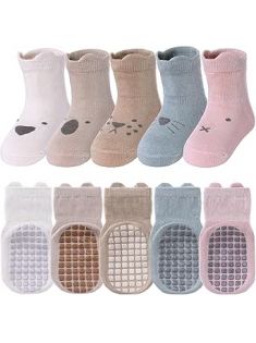 TRUEHAN 5 Pairs Toddler Non Slip Socks with Grips Baby Socks for Kids Girls Boys
