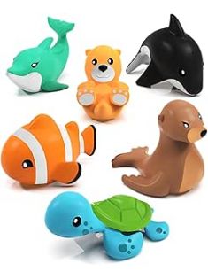 Tub Works® Marine™ 无模沐浴玩具,6 件装 | 密封无孔沐浴玩具设计防止水分进入 | 柔软、可挤压和漂浮在水上 | 易于抓握的婴幼儿沐浴玩具套装 | 绝佳 婴儿泳池玩具 oys