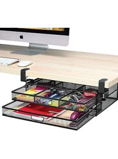 Under Desk Drawer Organizer Clamp-On, Mesh Metal Desk Drawer Attachment, 2 Drawer Slide Out, On Desk Or Under Desk Organizer For Office Supplies & Home Essentials (2 Drawers)