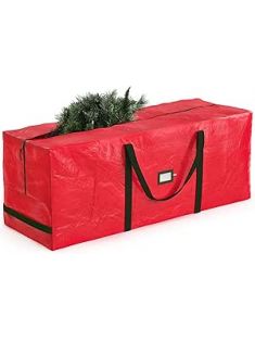 Zober Large Christmas Tree Storage Bag - Fits 9 Ft Artificial Trees - Plastic, Waterproof Christmas Tree Bag For Storage Box For Xmas - Strong, Durable Handles - Label Card Slot - Red