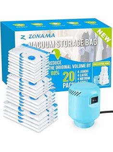 Vacuum Storage Bags with Electric Air Pump, 20 Pack (4 Jumbo, 4 Large, 4 Medium, 4 Small, 4 Roll Up Bags) Space Saving Bag for Clothes, Mattress, Blanket, Duvets, Pillows, Comforters,Travel