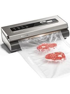 Vacuum Sealer Machine Powerful 90Kpa Precision 6-in-1 Compact Food Preservation System with Cutter, 2 Bag Rolls & 5 Pre-cut Bags, Widened 12mm Sealing Strip, Dry&Moist Modes (Silver)