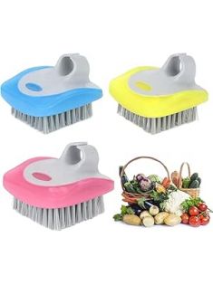 Vegetable Brush Scrubber for Food, 3PCS Fruit Brushes Veggie Scrubber Flexible Bristles Scrubber Cleaning Tool Kitchen Brush for Carrots Fruits Home Kitchen, Yellow Orange Blue