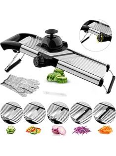 VEKAYA Mandoline Slicer,Mandoline Food Slicer for Kitchen,Mandolin,Potato Slicer,Vegetable Chopper,Adjustable Stainless Steel Veggie Onion Tomato Julienne Cutter with Cut-Resistant Gloves