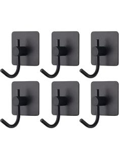 VAEHOLD 6 Pack Adhesive Wall Hooks, Heavy Duty Sticky Holder Aluminum Towel Hooks for Hanging Coat, Hat, Key, Clothes, Closet Hook Wall Mount for Kitchen, Bathroom, Office (Black)