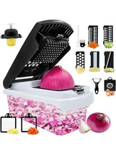 Vegetable Chopper - 13 in 1 Multifunctional Food Chopper,7 Blade Veggie Food Onion Cucumber Slicer, Cheese Grater,Home Essentials & Kitchen Gadgets(Black/White)