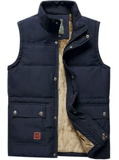 Vcansion Men's Outdoor Stand Collar Fleece Jacket Vest Casual Padded Vest Coats