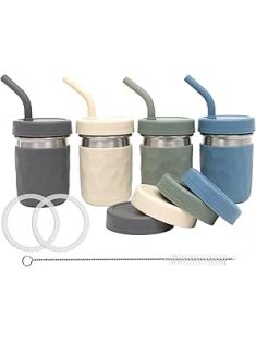 WeeSprout 2-in-1 Drinking Cups for Kids, Durable Stainless Steel Tumbler for Smoothies, Silicone Straws with Stoppers, Premium Plastic Twist Lids, Easy-Grip Sleeves, Set of 4 Dishwasher Safe Kid Cups