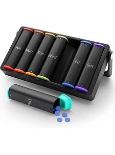 Weekly Pill Organizer 2 Times a Day, KOVIUU Large Travel Pill Box 7 Day, Am Pm Twice Daily Pill Case with Rotatable Handle, Week Pill Holder Container for Vitamin Medicine Supplement Fish Oil, Black
